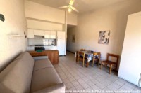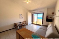 L’appartamento si trova nel complesso “Il Faraglione”, è al quinto piano senza ascensore, a due minuti a piedi dalla spiaggia. L’appartamento è composto da piccola camera con due letti singoli, soggiorno con divano letto matrimoniale ed angolo cottura, frigo a colonna con freezer, tv, lavatrice, bagno con doccia ed un terrazzo attrezzato per mangiare fuori con splendida vista mare. L'appartamento è dotato di pale a soffitto in camera e in soggiorno e di aria condizionata in soggiorno. L’appartamento, trovandosi in prossimità della macchia mediterranea, è molto tranquillo e ventilato.