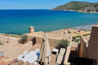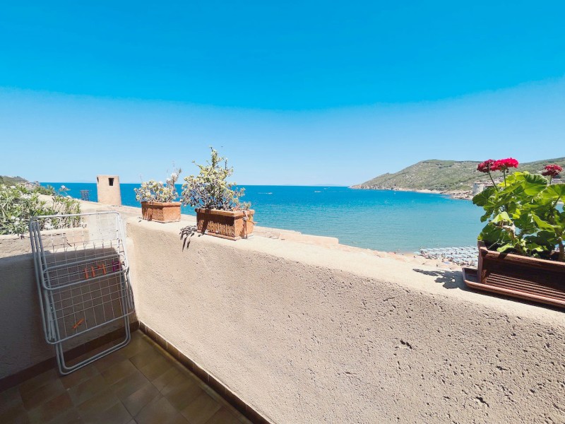 L’appartamento si trova nel complesso “Il Faraglione”, è al quinto piano senza ascensore, a meno di due minuti a piedi dalla spiaggia. L’appartamento è composto da camera con due letti singoli, disimpegno con letto a castello, soggiorno con divano letto matrimoniale ed angolo cottura, frigorifero a colonna con freezer, tv, lavatrice, bagno con doccia a filo pavimento e un grande terrazzo attrezzato per mangiare fuori con splendida vista mare e doccia esterna. L'appartamento è dotato di aria condizionata nel soggiorno. L’appartamento, trovandosi in prossimità della macchia mediterranea, è molto riservato e tranquillo.