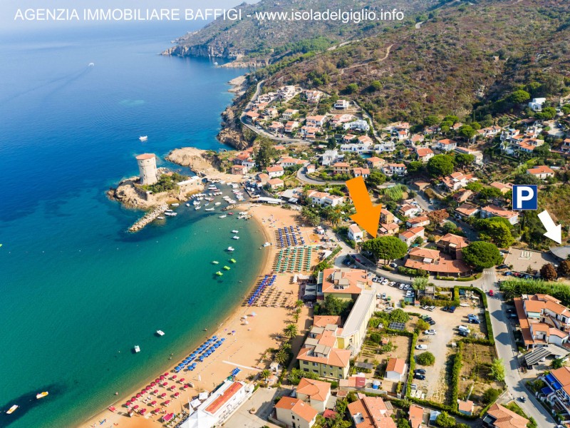 L’appartamento si trova nel centro di Giglio Campese, molto vicino a tutti i servizi, a dieci metri dalla spiaggia. Il monolocale è al primo piano senza ascensore ed è composto da una piccola stanza con letto matrimoniale con eventuale terzo letto sopra la struttura armadio, piccolo angolo cottura separato, piccolo frigorifero, tv, bagno con box doccia senza bidet. Il monolocale è dotato di aria condizionata, ha un piccolo balcone a tasca nel sottotetto ed un piccolo spazio esterno di entrata attrezzato per mangiare fuori. La lavatrice si trova nel sottotetto. L’appartamento ha un posto auto in paese.