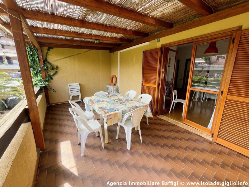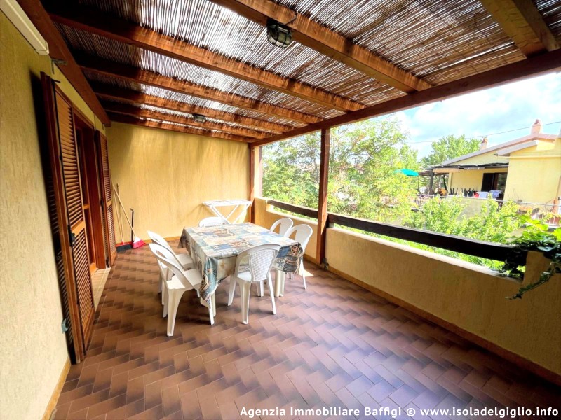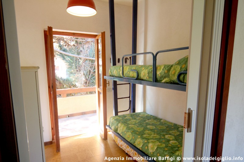 L’appartamento si trova a Giglio Campese a meno di due minuti a piedi dalla spiaggia. L’appartamento è al primo piano senza ascensore, con doppio affaccio. E' composto da camera con letto matrimoniale, camera con letto a castello e terzo letto estraibile, soggiorno con divano letto matrimoniale ed angolo cottura separato, frigorifero a colonna con freezer, tv, lavatrice, bagno con box doccia. L'appartamento è dotato di aria condizionata in soggiorno e camera matrimoniale. L’appartamento ha un ampio terrazzo coperto attrezzato per mangiare fuori ed un balcone da cui si accede dalla seconda camera. L’ appartamento ha il posto auto.