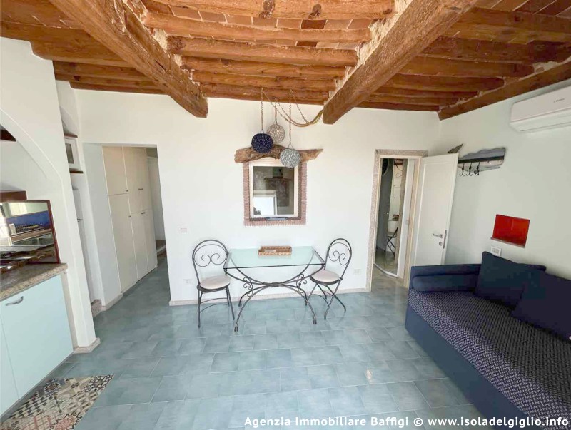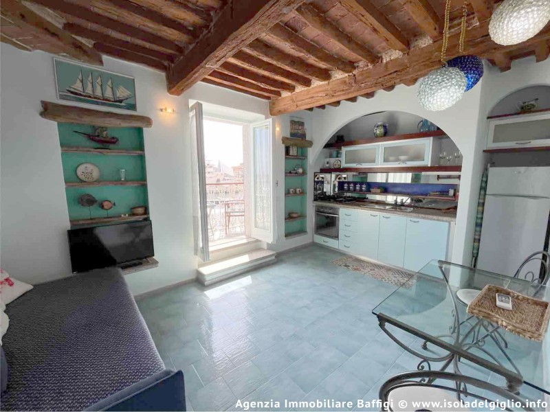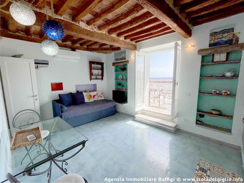 L’appartamento si trova nel centro storico di Giglio Porto , ha un bellissimo affaccio sul lungomare del piccolo borgo antico “porticciolo” e si raggiunge a piedi attraversando l’area pedonale. L’appartamento è composto da una piccola camera matrimoniale, soggiorno con divano letto singolo ed angolo cottura, bagno con comoda doccia, frigorifero a colonna con freezer, tv, lavatrice e balcone con ringhiera caratteristica. L’appartamento è dotato di aria condizionata, ha il posto auto per macchine di piccole dimensioni a circa duecento metri. Essendo ristrutturato in una maniera particolare, preferiamo affittarlo possibilmente a due persone. Occupando l'appartamento più di due persone anche con bambini, il prezzo va aumentato di circa il 10%. Il contesto è tipicamente gigliese, accanto si trovano le caratteristiche trattorie e ristorantini tipici dell’isola, dove si mangia alla maniera antica tutto ciò che il mare offre, accompagnato dal nostro vigoroso vino Ansonaco prodotto sull'isola. A meno di 150 metri si trova la piccola spiaggia di sabbia e scogli “ Lo Scalettino”.