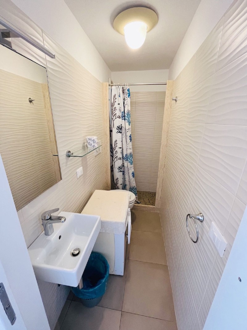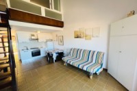 L’appartamento si trova nel complesso “Il Faraglione”, è al quarto piano senza ascensore a meno di due minuti a piedi dalla spiaggia. L’appartamento è composto da una piccola cameretta con due letti a terra , soggiorno con divano letto matrimoniale ed angolo cottura, frigorifero a colonna con freezer, tv, lavatrice, bagno con doccia ed un un soppalco con camera matrimoniale e bagno con box doccia. L'appartamento è dotato di aria condizionata nel soggiorno e nella camera matrimoniale. L’appartamento ha un piccolo balcone con stupenda vista mare.