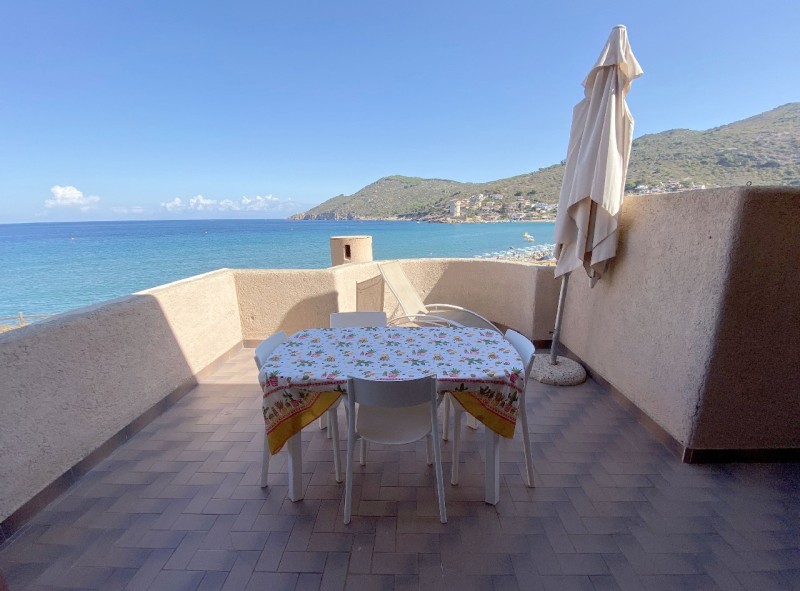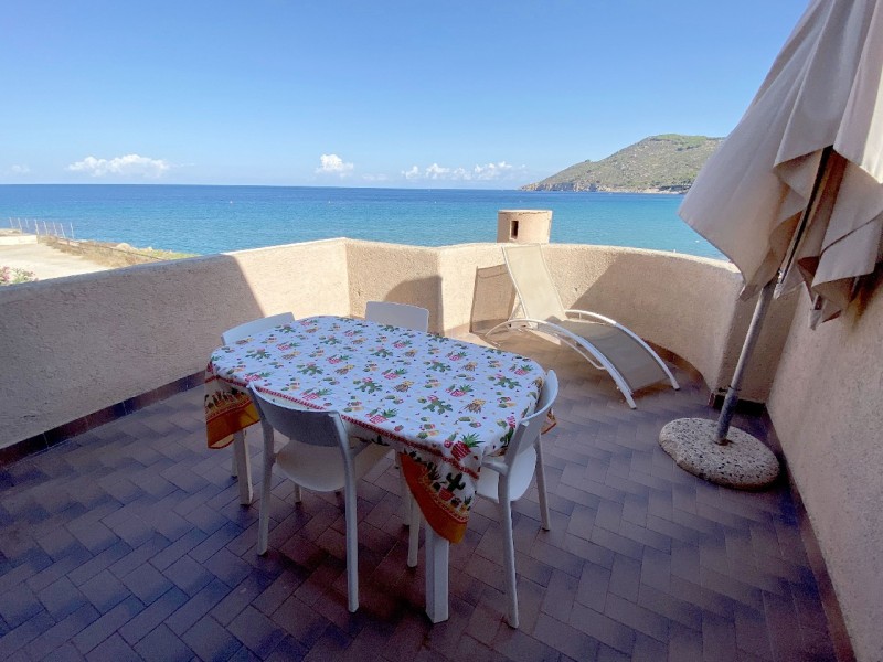 L’appartamento si trova nel complesso “Il Faraglione”, è al primo piano senza ascensore a otto metri dalla spiaggia. L’appartamento è composto da uno spazio separato con letto a castello, piccolo soggiorno con divano letto matrimoniale e angolo cottura con piano a induzione, frigorifero a colonna con freezer , tv, bagno con doccia, lavatrice e ampia terrazza attrezzata per mangiare fuori con splendida vista mare. L’appartamento è dotato di pale a soffitto e aria condizionata nel soggiorno.