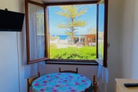 L’appartamento si trova nel complesso “ il Gabbiano” a pochi passi dalla spiaggia, al piano terra rialzato e con posto auto coperto. L’appartamento, dotato di pale a soffitto, è composto da una camera matrimoniale con aria condizionata, piccolo soggiorno con angolo cottura, frigorifero a colonna con freezer, tv. Dalla camera si accede al bagno con box doccia e lavatrice. L’appartamento ha un veranda per mangiare fuori e uno spazio esterno.