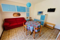 L’appartamento si trova nel complesso “ il Gabbiano” a pochi passi dalla spiaggia, al piano terra rialzato e con posto auto coperto. L’appartamento, dotato di pale a soffitto, è composto da una camera matrimoniale con aria condizionata, disimpegno con letto a castello, soggiorno con divano letto matrimoniale e angolo cottura separato, frigorifero a colonna con freezer, tv, bagno con box doccia e lavatrice. L’appartamento ha un veranda per mangiare fuori e uno spazio esterno.