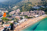 L’appartamento si trova a poche decine di metri dalla spiaggia, vi si accede da una piccola strada privata dove si trova il posto auto. L’appartamento è al primo piano senza ascensore ed è composto da una camera matrimoniale, soggiorno con angolo cottura e con divano letto a due letti singoli, bagno con doccia e una comoda veranda. L’appartamento è dotato di pale a soffitto, l'aria condizionata è presente in camera. La lavatrice è all’esterno a fianco della scala di accesso.
