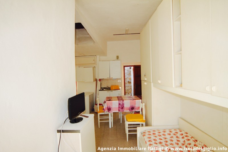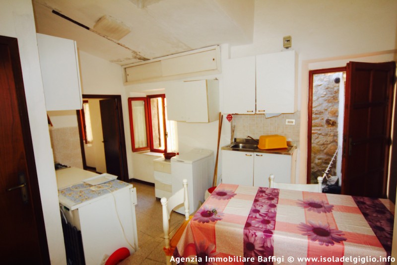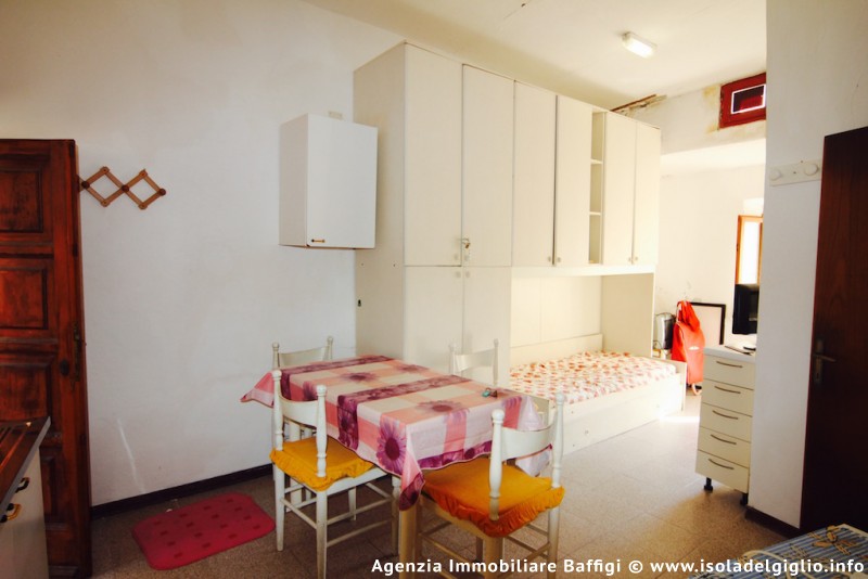 Bilocale al secondo piano situato dentro le mura del caratteristico borgo di Giglio Castello. Il bilocale, da ristrutturare, si compone di zona giorno con cucina a vista e spazio separato con divano letto, camera matrimoniale e un bagno con doccia.