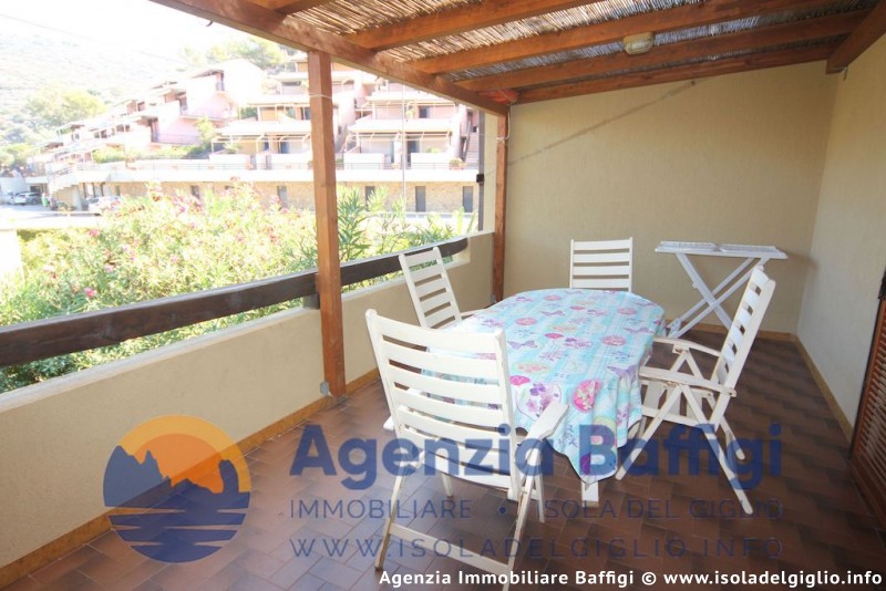 L’appartamento si trova a Giglio Campese a meno di due minuti a piedi dalla spiaggia. L’appartamento è al primo piano, con doppio affaccio, è composto da camera con letto matrimoniale, camera con letto a castello e terzo letto estraibile, soggiorno con divano letto matrimoniale ed angolo cottura separato, frigorifero a colonna con freezer, tv, lavatrice, bagno con box doccia. In soggiorno ed in camera matrimoniale è dotato di aria condizionata. L’appartamento ha un ampio terrazzo coperto attrezzato per mangiare fuori ed un balcone da cui si accede dalla seconda camera. L’ appartamento ha il posto auto.