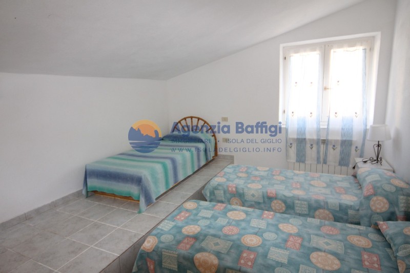 L’immobile si trova nel centro di Giglio Campese in zona pedonale a meno di cinquanta metri dalla spiaggia. La villetta si sviluppa su due piani. Il piano terra è composto da una camera matrimoniale, ampio soggiorno con cucina a vista e un bagno di servizio. Al primo piano, nella mansarda, troviamo una seconda camera e un bagno con doccia e vasca. Da questo piano si accede a un piccolo terrazzo di servizio. All'esterno l'immobile gode di un ampio spazio esterno in parte pavimentato e in parte mantenuto a verde. L'appartamento, da ristrutturare, è un ottimo investimento.